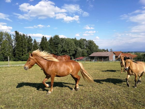 Grüzi wohl, ich bin der Hiro, ein Freiberger, sogar ein echter Schweizer und das jüngste Pferd am Hof. Aber mit meinen fast 1,70 m Stockmaß bestimmt nicht das kleinste. Ich stecke meine Nase gerne überall rein, denn ich bin seeehr neugierig und finde alles toll! Außerdem bin ich stets motiviert und lebensfroh. Ob Bogenschießen, Ausreiten oder Voltigieren, ich bin immer gerne mit dabei. Ein Held bin ich auch, obwohl man Hero eigentlich mit e schreibt, aber wen interessierts? Denn ich bin mutig und trotz meines jungen Alters kannst du dich auf mich verlassen. Mein Erkennungsmerkmal ist mein einzigartiger weißer Fleck an meiner linken Seite und meine 3 weißen Socken (die vierte hab ich verloren).